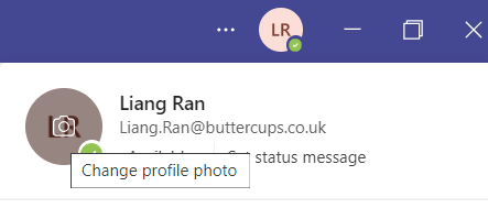 - Open Teams, click the circuler icon with your initial on top right corner.
